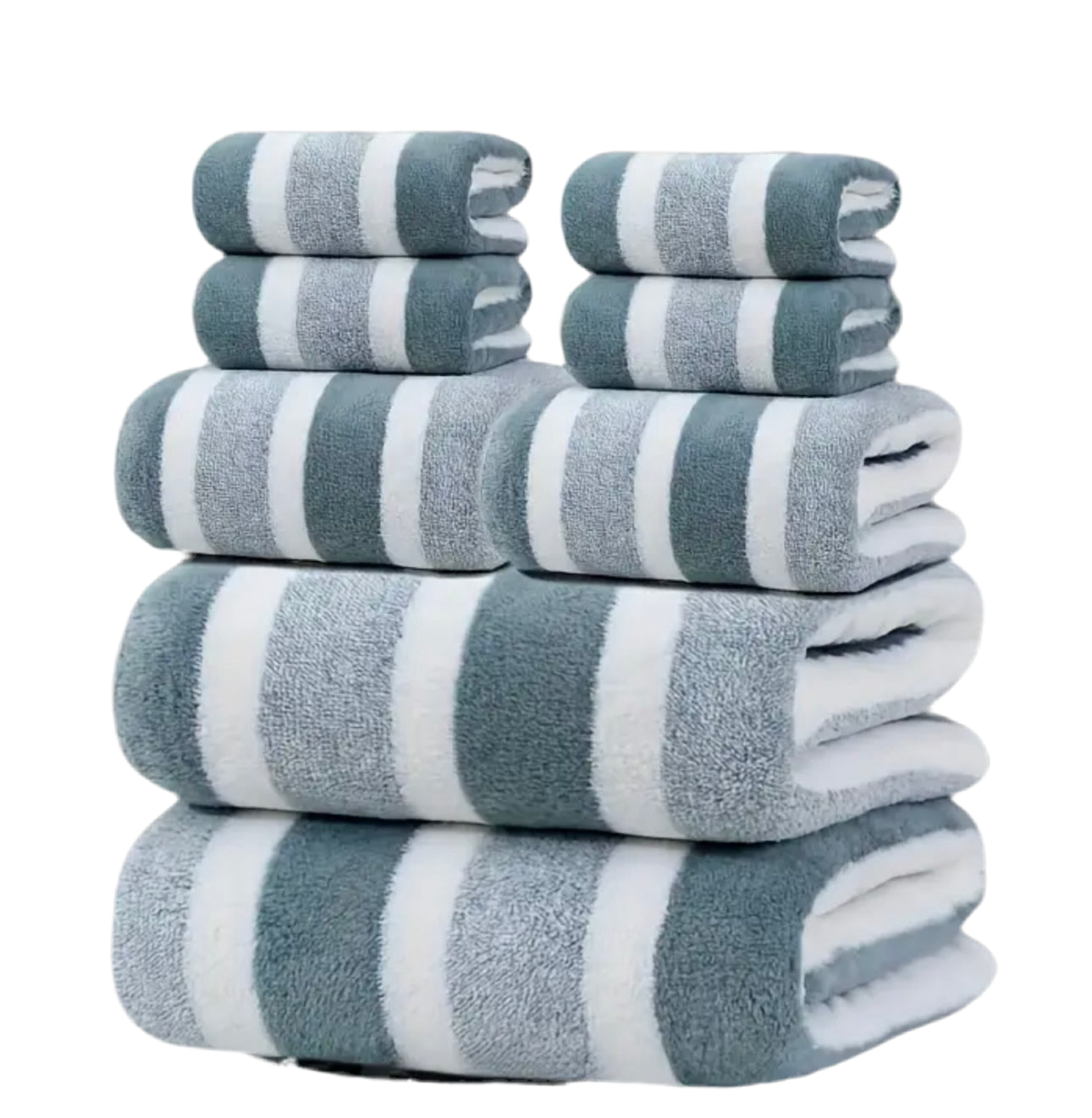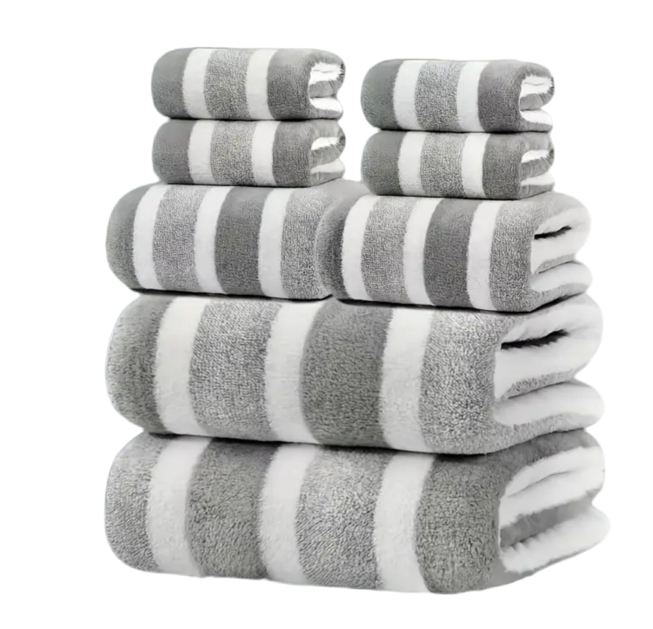 🛁✨ Set de 8 Toallas Rayadas XXL – Máxima suavidad y estilo