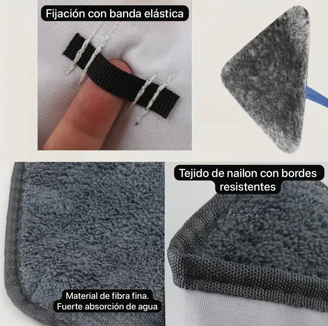 Fijación segura: Banda elástica para que el paño se mantenga firme durante la limpieza.