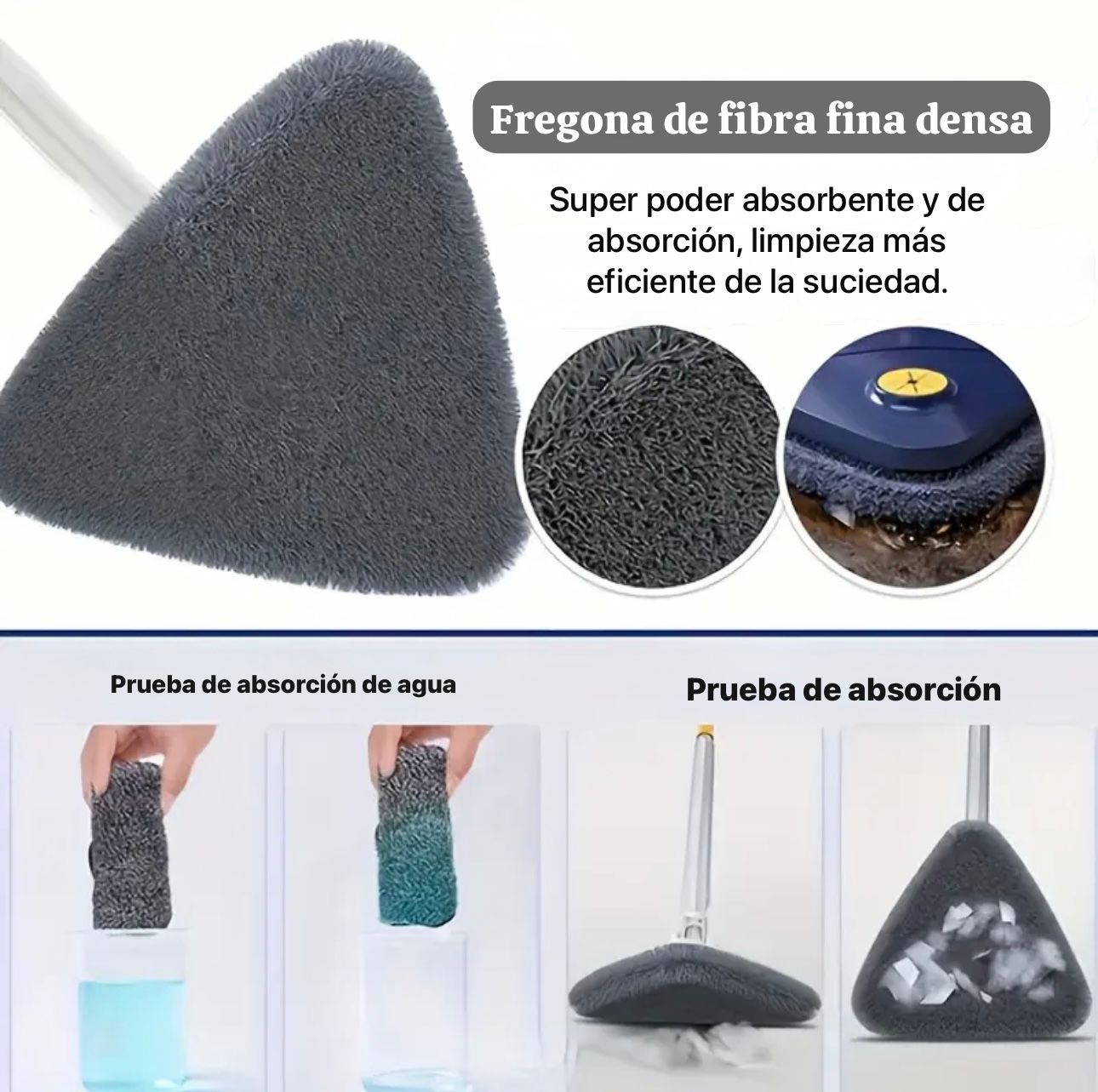 Tecnología de microfibra fina: Atrapa polvo, suciedad, pelos de mascotas y absorbe líquidos con máxima eficacia.